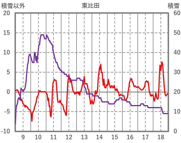 | 日 | 時 | 気温 | 降水 | 風向/風速 | 日照 | 積雪 | 降雪 |