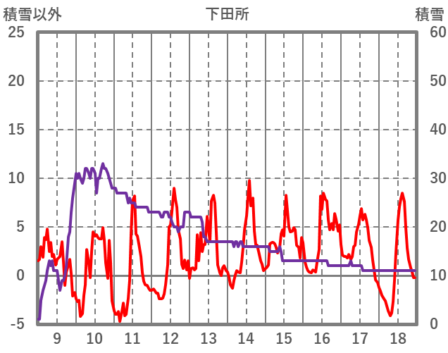 | 日 | 時 | 気温 | 降水 | 風向/風速 | 日照 | 積雪 | 降雪 |