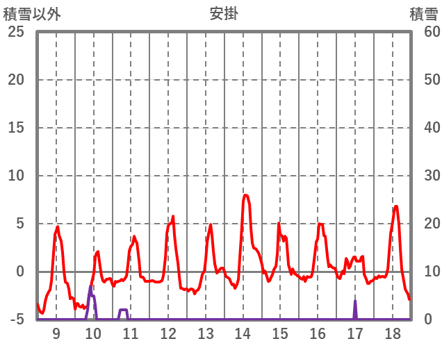 | 日 | 時 | 気温 | 降水 | 風向/風速 | 日照 | 積雪 | 降雪 |