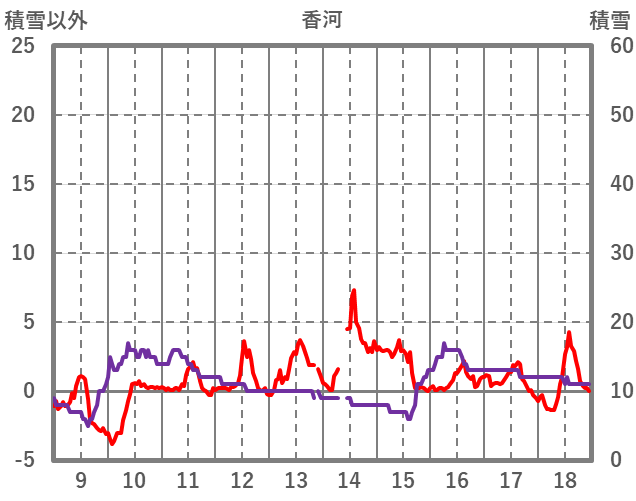 | 日 | 時 | 気温 | 降水 | 風向/風速 | 日照 | 積雪 | 降雪 |