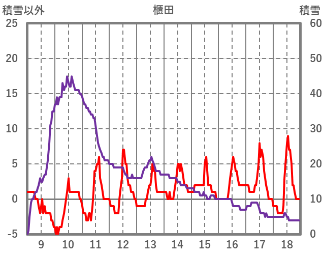 | 日 | 時 | 気温 | 降水 | 風向/風速 | 日照 | 積雪 | 降雪 |