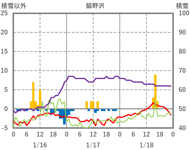 | 日 | 時 | 気温 | 降水 | 風向/風速 | 日照 | 積雪 | 降雪 |