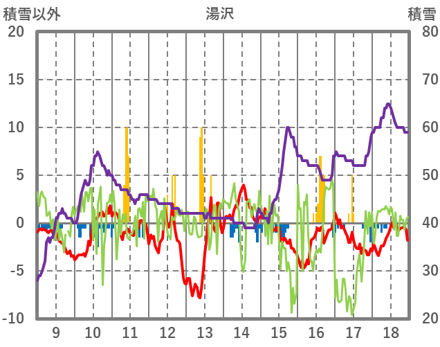 | 日 | 時 | 気温 | 降水 | 風向/風速 | 日照 | 積雪 | 降雪 |