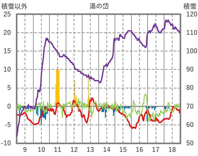 | 日 | 時 | 気温 | 降水 | 風向/風速 | 日照 | 積雪 | 降雪 |