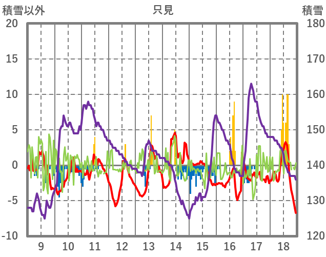 | 日 | 時 | 気温 | 降水 | 風向/風速 | 日照 | 積雪 | 降雪 |