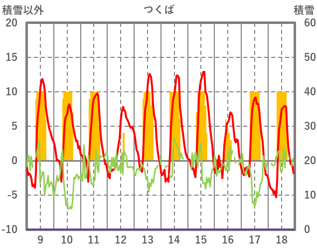 | 日 | 時 | 気温 | 降水 | 風向/風速 | 日照 | 積雪 | 降雪 |