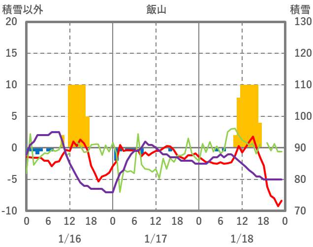 | 日 | 時 | 気温 | 降水 | 風向/風速 | 日照 | 積雪 | 降雪 |