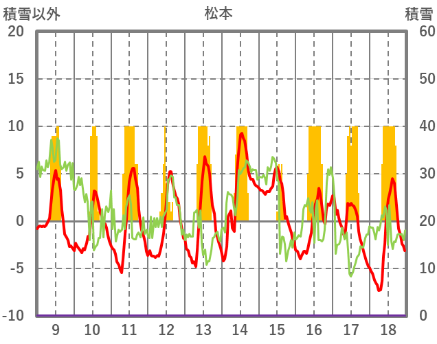 | 日 | 時 | 気温 | 降水 | 風向/風速 | 日照 | 積雪 | 降雪 |