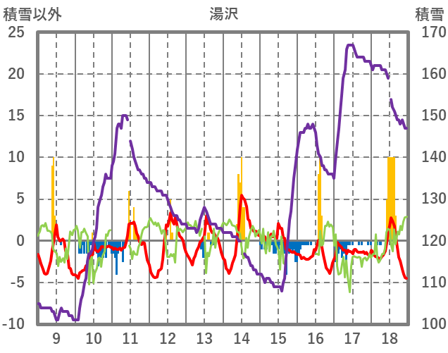 | 日 | 時 | 気温 | 降水 | 風向/風速 | 日照 | 積雪 | 降雪 |
