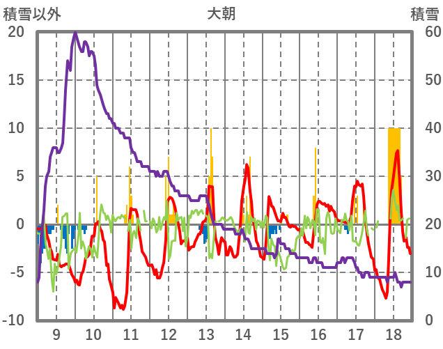 | 日 | 時 | 気温 | 降水 | 風向/風速 | 日照 | 積雪 | 降雪 |