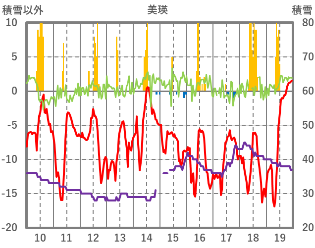 | 日 | 時 | 気温 | 降水 | 風向/風速 | 日照 | 積雪 | 降雪 |