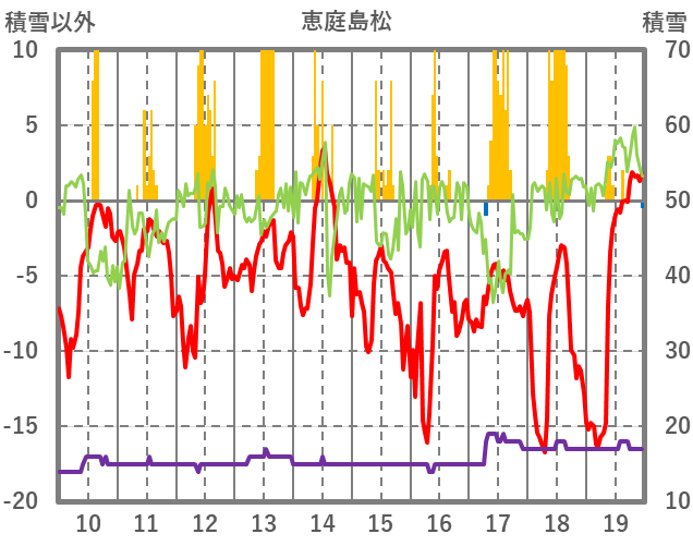 | 日 | 時 | 気温 | 降水 | 風向/風速 | 日照 | 積雪 | 降雪 |