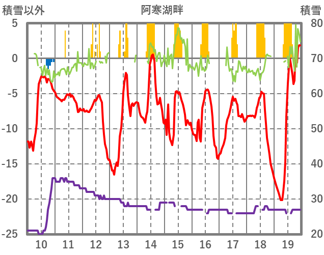 | 日 | 時 | 気温 | 降水 | 風向/風速 | 日照 | 積雪 | 降雪 |
