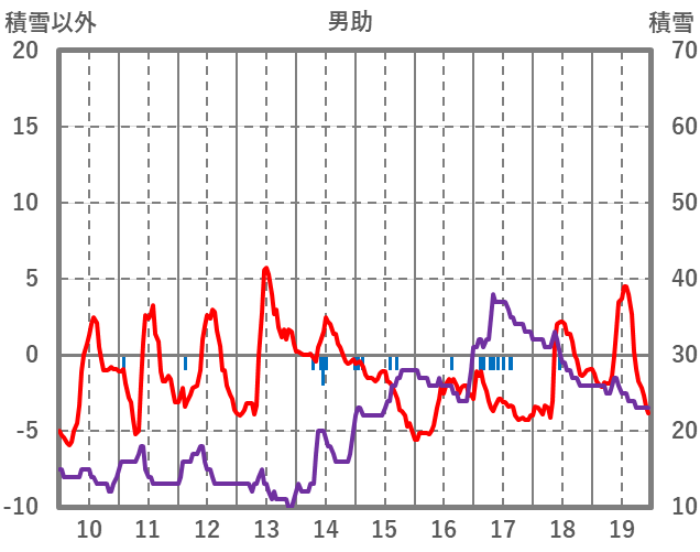 | 日 | 時 | 気温 | 降水 | 風向/風速 | 日照 | 積雪 | 降雪 |