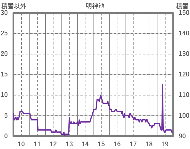 | 日 | 時 | 気温 | 降水 | 風向/風速 | 日照 | 積雪 | 降雪 |