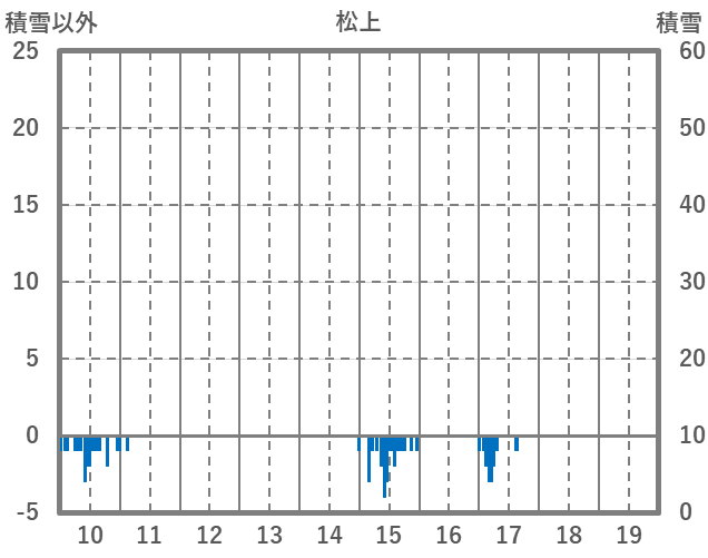 | 日 | 時 | 気温 | 降水 | 風向/風速 | 日照 | 積雪 | 降雪 |