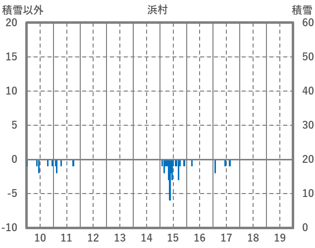 | 日 | 時 | 気温 | 降水 | 風向/風速 | 日照 | 積雪 | 降雪 |