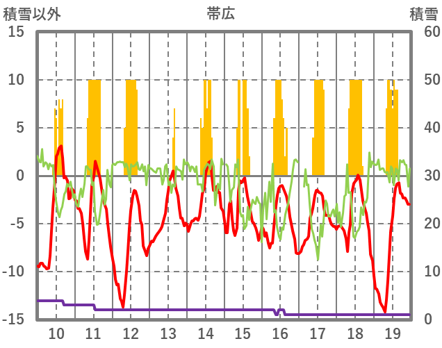 | 日 | 時 | 気温 | 降水 | 風向/風速 | 日照 | 積雪 | 降雪 |