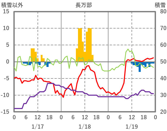 | 日 | 時 | 気温 | 降水 | 風向/風速 | 日照 | 積雪 | 降雪 |