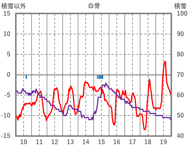 | 日 | 時 | 気温 | 降水 | 風向/風速 | 日照 | 積雪 | 降雪 |