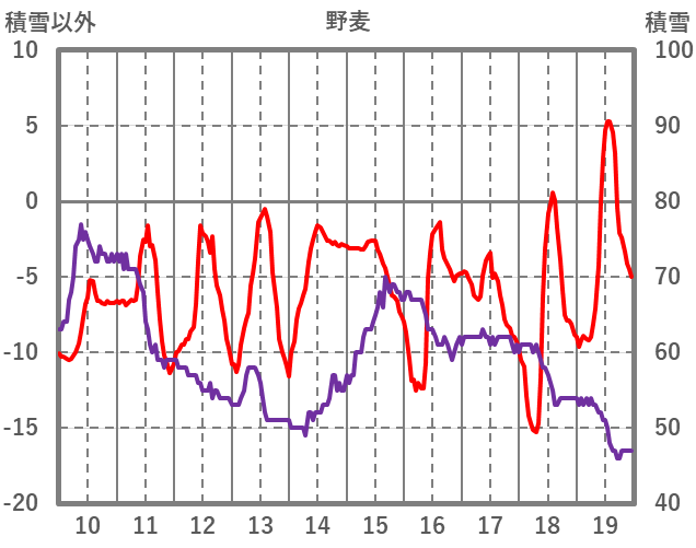 | 日 | 時 | 気温 | 降水 | 風向/風速 | 日照 | 積雪 | 降雪 |