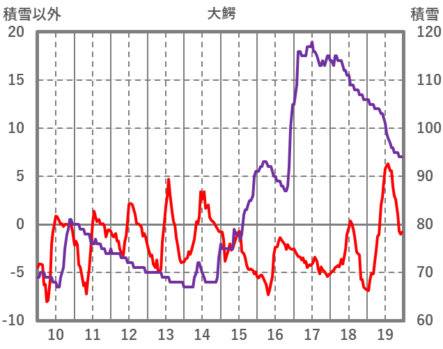 | 日 | 時 | 気温 | 降水 | 風向/風速 | 日照 | 積雪 | 降雪 |