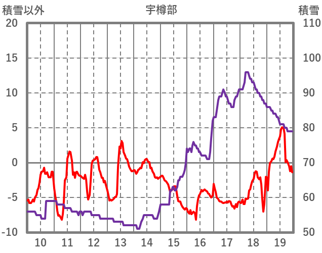 | 日 | 時 | 気温 | 降水 | 風向/風速 | 日照 | 積雪 | 降雪 |