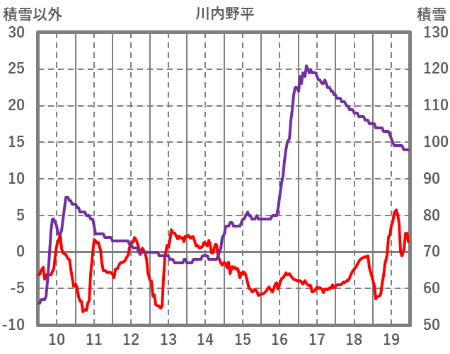 | 日 | 時 | 気温 | 降水 | 風向/風速 | 日照 | 積雪 | 降雪 |