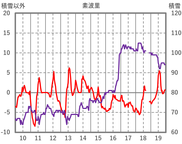 | 日 | 時 | 気温 | 降水 | 風向/風速 | 日照 | 積雪 | 降雪 |