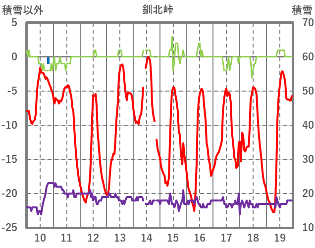 | 日 | 時 | 気温 | 降水 | 風向/風速 | 日照 | 積雪 | 降雪 |