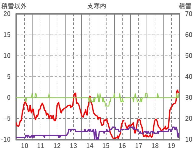 | 日 | 時 | 気温 | 降水 | 風向/風速 | 日照 | 積雪 | 降雪 |