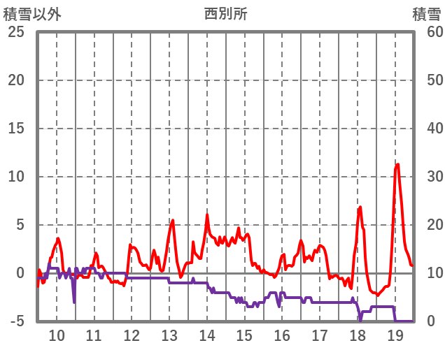 | 日 | 時 | 気温 | 降水 | 風向/風速 | 日照 | 積雪 | 降雪 |