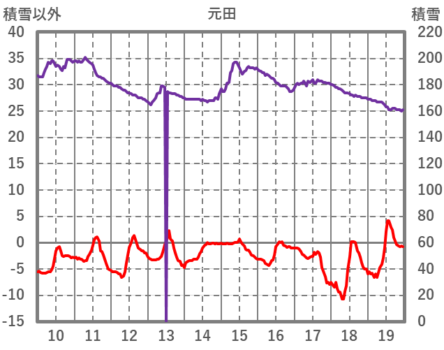 | 日 | 時 | 気温 | 降水 | 風向/風速 | 日照 | 積雪 | 降雪 |