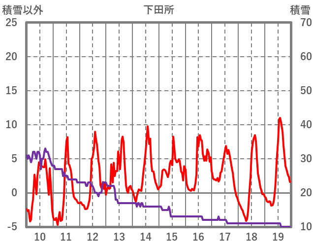 | 日 | 時 | 気温 | 降水 | 風向/風速 | 日照 | 積雪 | 降雪 |