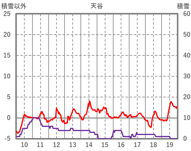| 日 | 時 | 気温 | 降水 | 風向/風速 | 日照 | 積雪 | 降雪 |