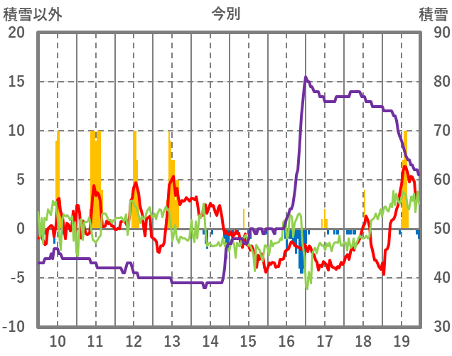 | 日 | 時 | 気温 | 降水 | 風向/風速 | 日照 | 積雪 | 降雪 |