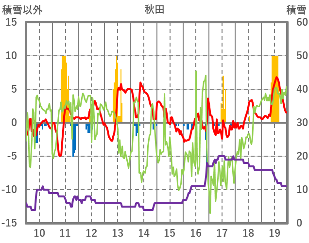| 日 | 時 | 気温 | 降水 | 風向/風速 | 日照 | 積雪 | 降雪 |