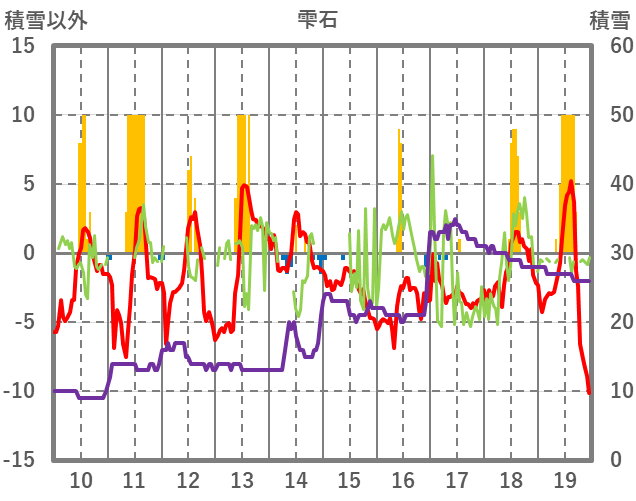 | 日 | 時 | 気温 | 降水 | 風向/風速 | 日照 | 積雪 | 降雪 |