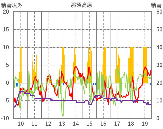 | 日 | 時 | 気温 | 降水 | 風向/風速 | 日照 | 積雪 | 降雪 |