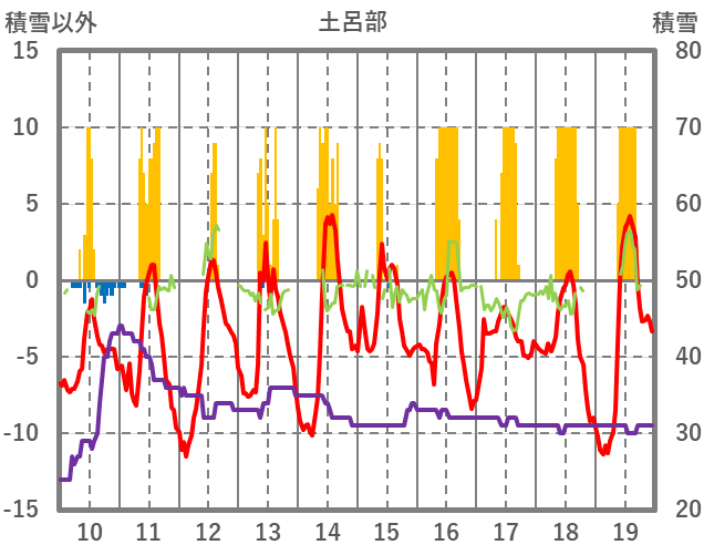 | 日 | 時 | 気温 | 降水 | 風向/風速 | 日照 | 積雪 | 降雪 |