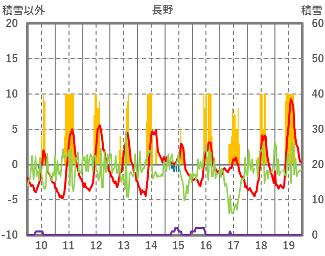 | 日 | 時 | 気温 | 降水 | 風向/風速 | 日照 | 積雪 | 降雪 |