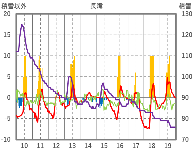 | 日 | 時 | 気温 | 降水 | 風向/風速 | 日照 | 積雪 | 降雪 |