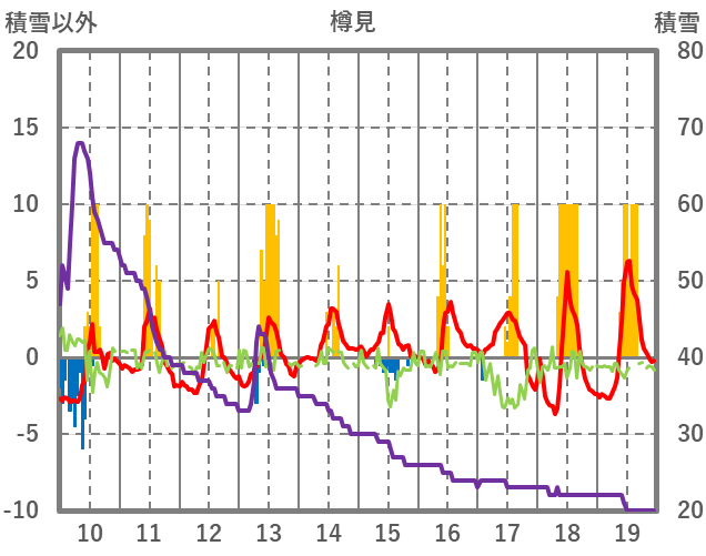 | 日 | 時 | 気温 | 降水 | 風向/風速 | 日照 | 積雪 | 降雪 |