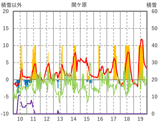 | 日 | 時 | 気温 | 降水 | 風向/風速 | 日照 | 積雪 | 降雪 |