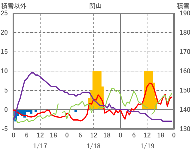 | 日 | 時 | 気温 | 降水 | 風向/風速 | 日照 | 積雪 | 降雪 |