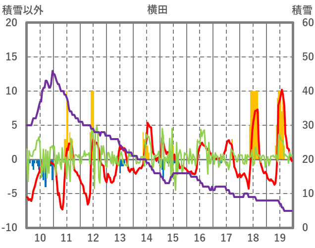 | 日 | 時 | 気温 | 降水 | 風向/風速 | 日照 | 積雪 | 降雪 |