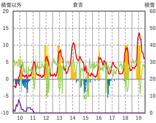 | 日 | 時 | 気温 | 降水 | 風向/風速 | 日照 | 積雪 | 降雪 |