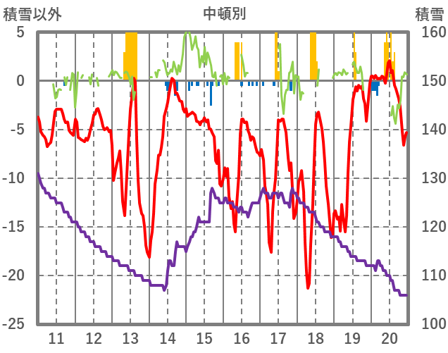 | 日 | 時 | 気温 | 降水 | 風向/風速 | 日照 | 積雪 | 降雪 |