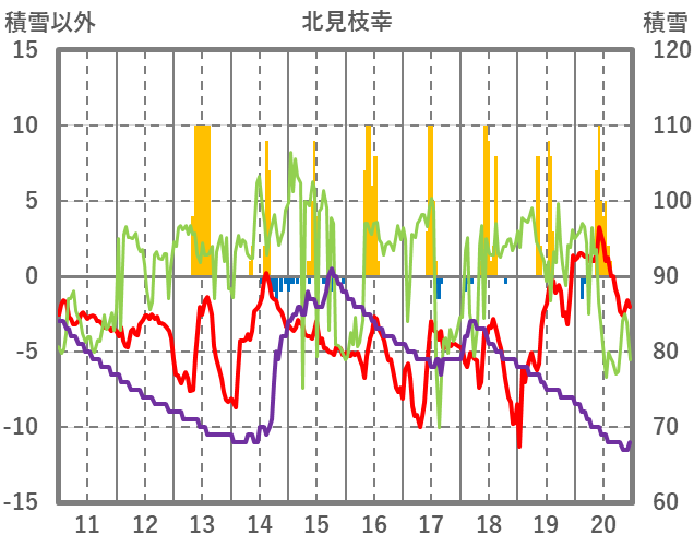 | 日 | 時 | 気温 | 降水 | 風向/風速 | 日照 | 積雪 | 降雪 |