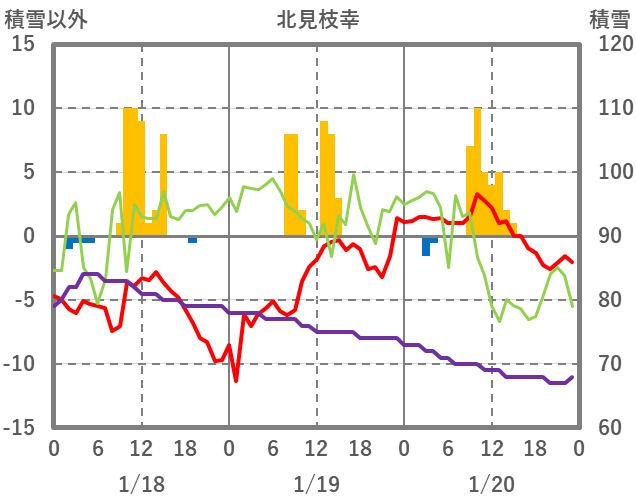 | 日 | 時 | 気温 | 降水 | 風向/風速 | 日照 | 積雪 | 降雪 |